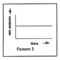 Fortunately, there are signs that more direct evidence on this difficult topic may be forthcoming. In the studies by Cohen (op cit) and by Ditton (op cit), cocaine users were asked to examine a series of graphical representations which depicted their cocaine-use career. These graphical representations, first used by Cohen, are illustrated below. The graphs represent in pictorial form fluctuations in use over time, and drug users are asked to choose the graph which best describes their use career.