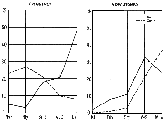 Figure 17-2. CONTROL OVER FANTASIES AND THOUGHTS Note.For guide to interpreting the "How Stoned" graph, see note on Figure 6-1. |