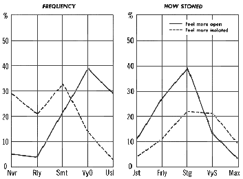 Figure 18-1. OPENNESS VS. ISOLATION Note.For guide to interpreting the "How Stoned" graph, see note on Figure 6-1. |