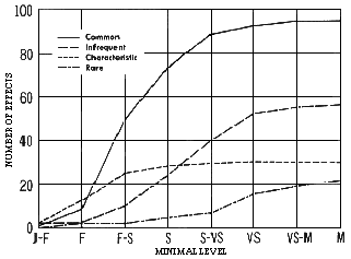 This is illustrated in Figure 24-1, a plot of the cumulative distributions of various types of effects by the minimal level of intoxication presented earlier for each individual effect.